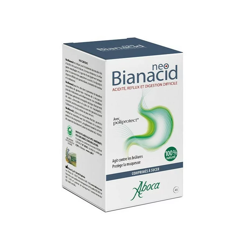 Описание NeoBianacid от AbocaNeoBianacid от Aboca — это медицинское устройство, специально разработанное для лечения кислотности, рефлюкса и затрудненного пищеварения.