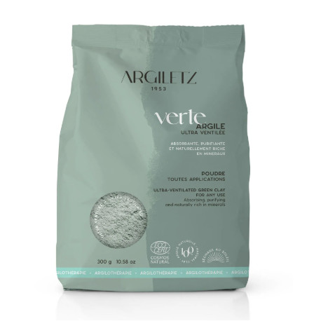 Сверхпроветриваемая зеленая глина Argiletz®, богатая полезными для организма минералами, представляет собой мелкий глиняный порошок толщиной около 20 микрон, добываемый во Франции и на 100% натуральный.