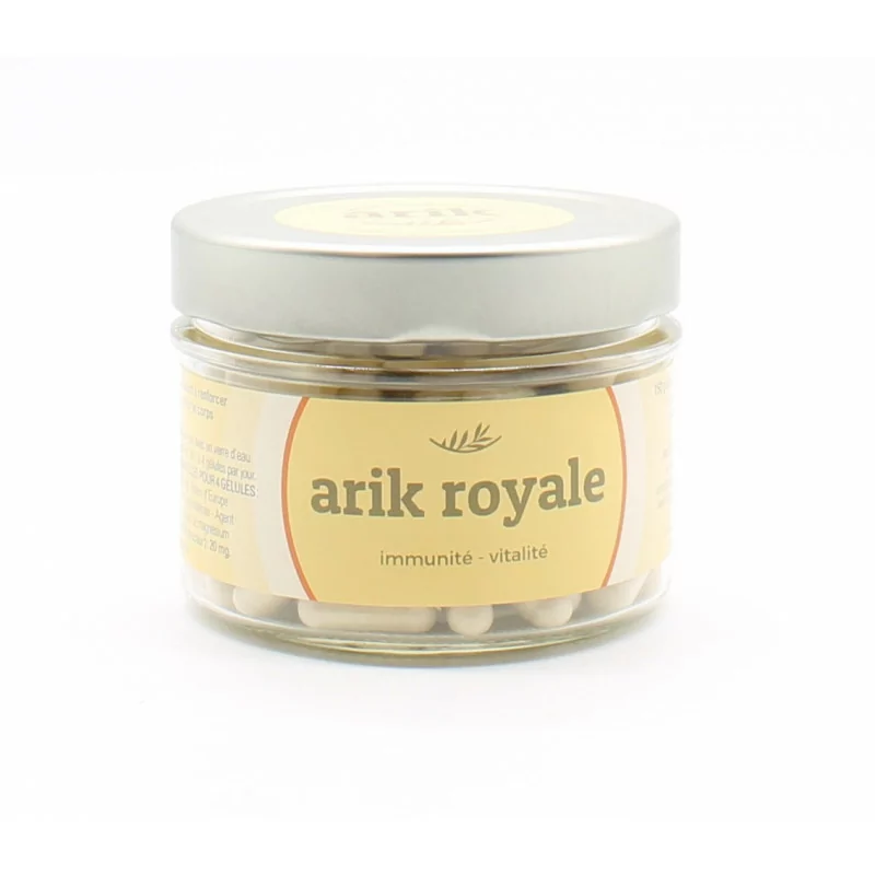 Описание: Arik Royale состоит из маточного молочка и пыльцы. В совокупности они помогают укрепить естественную защиту. Пыльца помогает укрепить организм и повышает жизненный тонус. Рекомендации по применению Принимать по 2 капсулы в день со стаканом воды в течение 1–3 месяцев. Состав: 4 капсулы: