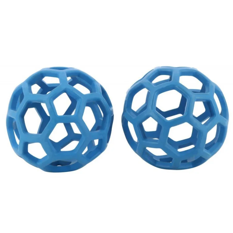 Мяч имеет расширяемые отверстия, в которые можно вставить банджи-шнур или привязь.