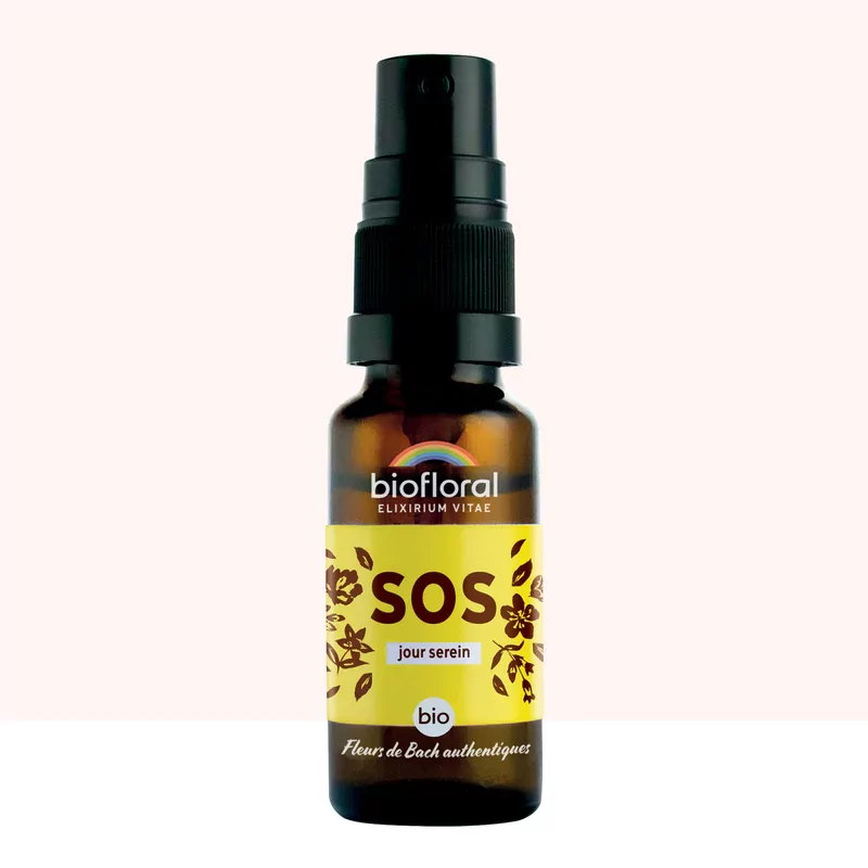 При необходимости возможен прием каждые 1/4 часа. Каков состав спрея Biofloral SOS Jour Serein? Коньяк (27% об.)**, препарат «Цветы Баха»*: каменная роза (Helianthemum nummularium), недотрога (Impatiens Glandulifera), клематис (Clematis Vitalba), алыча (Prunus cerasifera), вифлеемская звезда (Ornithogalum umbellatum) по 1 шт. /240-й по оригинальному методу доктора Баха *Ингредиенты органического и **биодинамического земледелия.