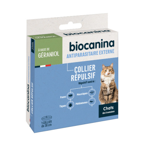 Защищает кошек и котят от 8 недель от внешних паразитов путем непрерывного распыления активного ингредиента в течение 3 месяцев: блох, клещей, комаров, клещей, москитов и вшей. Ошейник-репеллент Biocanina для кошек и котят не влияет на обоняние животного, водонепроницаем и оснащен устройством против удушения.