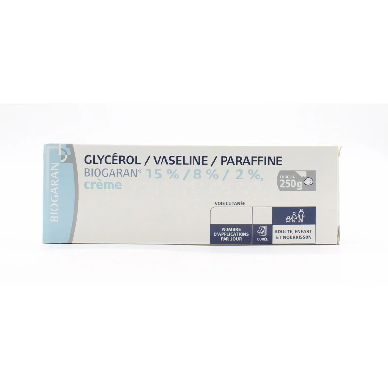 Дополнительная информация о креме с глицерином и вазелином и парафином Biogaran. Обязательно храните крем с глицерином и вазелином и парафином Biogaran в недоступном для детей месте. Будьте осторожны и не используйте этот крем после истечения срока годности, указанного на тюбике. Это лекарство, мы предлагаем вам ознакомиться с инструкцией или обратиться за советом к врачу или фармацевту.