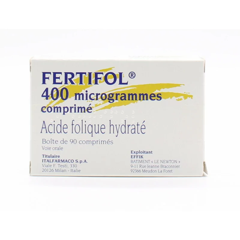 Гидратированная фолиевая кислота эквивалентна 400 мкг безводной фолиевой кислоты. Прочие ингредиенты: моногидрат лактозы, микрокристаллическая целлюлоза, карбоксиметилкрахмал натрия (тип А), стеарат магния. Дополнительная информация Всегда храните Фертифол 400 мкг в недоступном для детей месте.