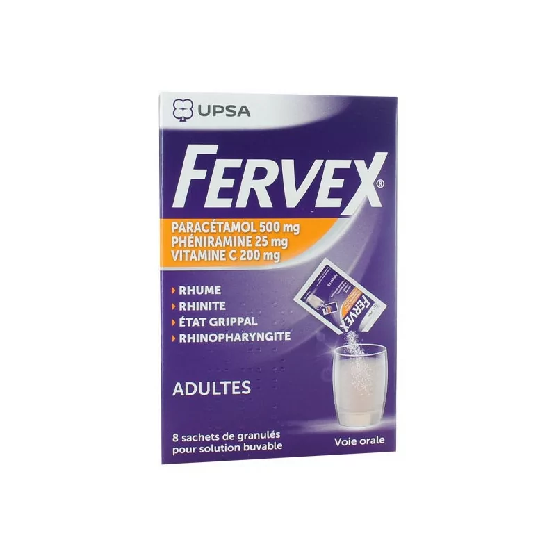 Совет от фармацевта Univers Pharmacie относительно препарата Фервекс. Препарат Фервекс относится к семейству антигистаминных и обезболивающих препаратов. Этот препарат сочетает в своей формуле парацетамол, антигистаминный препарат и витамин С. Парацетамол оказывает обезболивающее (обезболивающее) действие и жаропонижающее действие, снижая температуру тела при лихорадочных состояниях. Антигистаминный препарат помогает высушить выделения из носа, вызванные, например, простудой. Витамин С помогает поддерживать иммунную систему. Фервекс для взрослых рекомендуется для облегчения простудных и гриппоподобных заболеваний, а также насморка, чихания, слезотечения, головных болей и лихорадки. Этот препарат выпускается в разных формах: гранулы или гранулы для раствора для перорального применения, а также версия без сахара.