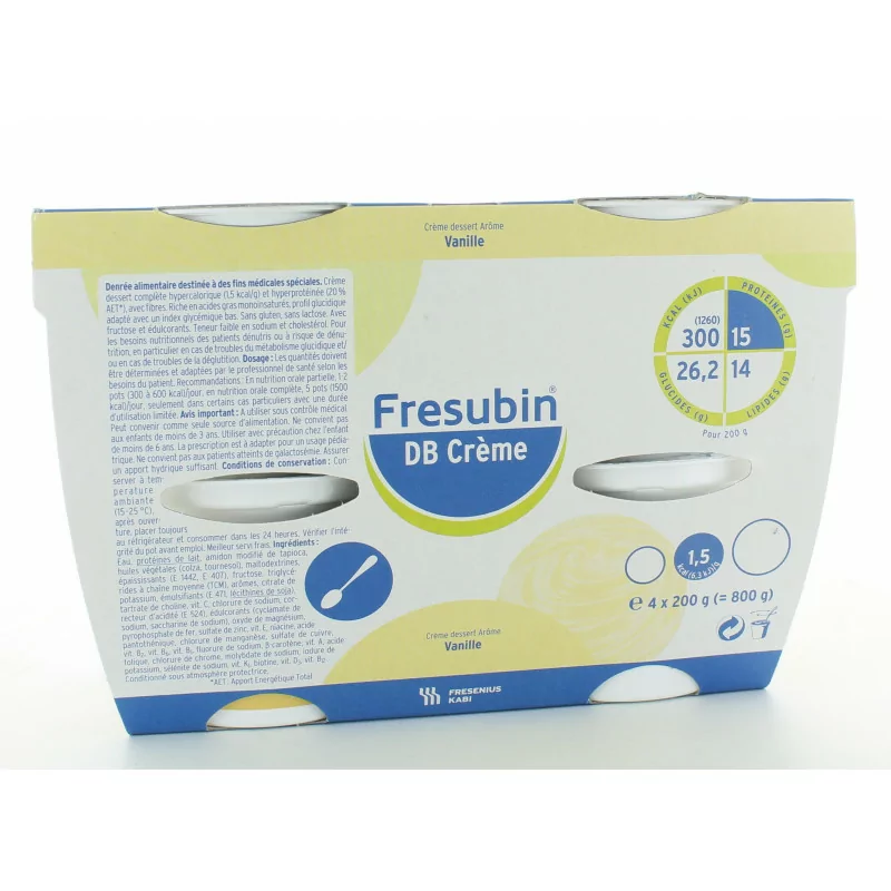 Показания Fresubin DB Vanilla Aroma Cream — это высококалорийный десертный крем с высоким содержанием белка, клетчаткой и кремовой текстурой. Этот крем не содержит лактозы и глютена.