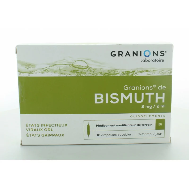 Препарат применяют в качестве модификатора местности, особенно при вирусных инфекционных заболеваниях ЛОР-органов и гриппоподобных состояниях. Дозировка и способ применения. Принимать внутрь по 1–2 ампулы в день. Меры предосторожности: Никогда не применять Висмут Гранион 2 мг. /2мл при аллергии на действующее вещество; или любой из других ингредиентов этого лекарства.