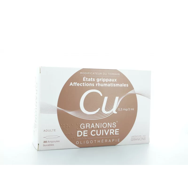 Показания: Медные Гранионы — это препарат в растворе для перорального применения, используемый в качестве модификатора поля в следующих случаях: — Инфекционные и вирусные состояния — Грипповые состояния — Воспалительные ревматические заболевания — Остеоартрит — Способ и способ применения Медные Гранионы следует принимать внутрь. Разведите содержимое ампулы в небольшом количестве воды и выпейте все. Дозировка Медные Гранионы – это лекарство, предназначенное для взрослых. Принимайте по 2–3 ампулы в день, желательно вне еды. При остеоартрите рекомендуемая дозировка составляет 1 ампулу 3 раза в день. Меры предосторожности при применении Никогда не используйте Copper Granions, если у вас аллергия на один из компонентов лекарства. Все противопоказания, особые предупреждения, а также список нежелательных эффектов, связанных с этим продуктом, вы найдете в инструкции. Как и любой активный продукт, этот препарат может вызывать определенное количество побочных эффектов. Список этих эффектов доступен в брошюре. Чтобы избежать возможных лекарственных взаимодействий, сообщите своему врачу о любом текущем или недавнем использовании лекарств, в том числе полученных без рецепта. Лучше не использовать Медные Гранионы во время беременности и кормления грудью. Состав: Активное вещество (на 1 ампулу 2 мл): Медь: 0,3 мг Дополнительные ингредиенты: амилоза, глицерин, дигидрат динатрийфосфата, безводный дигидрофосфат калия, гидросульфит натрия, сульфит натрия, вода очищенная. Дополнительная информацияЕсли симптомы сохраняются или ухудшаются, несмотря на лечение, обратитесь к врачу. Обязательно храните медные Гранионы в недоступном для детей месте. Чтобы узнать всю информацию об этом лекарстве, мы рекомендуем вам ознакомиться с инструкцией на упаковке или спросить своего врача или фармацевта.