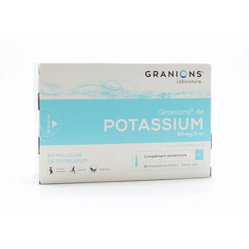 ОписаниеКалий 80 мг/2 мл от Granions представляет собой пищевую добавку на основе калия с подсластителем. Способ применения Принимать по 1 ампуле в день. Состав: очищенная вода, минерал: моногидрат цитрата калия, стабилизатор: растительный глицерин, коллоидный агент: амилоза, подсластитель: сукралоза. Состав на 1 ампулу (%VNR*): Калий: 80 мг (4%)* Рекомендации по пищевой ценности Меры предосторожности при использовании Как и любую пищевую добавку, ее следует принимать как часть разнообразной и сбалансированной диеты и здорового образа жизни.