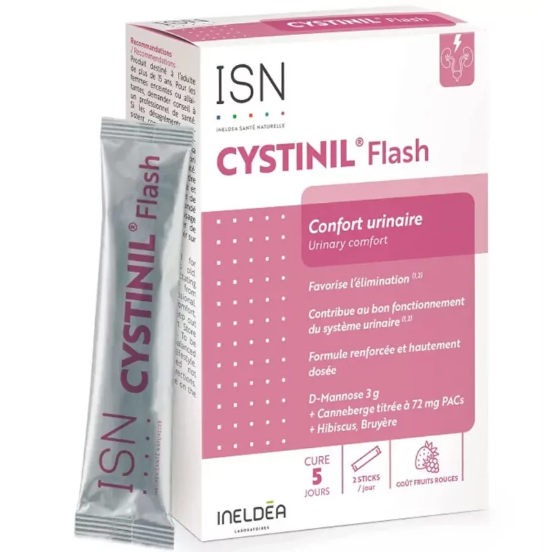 Cystinil Flash Urinary Comfort также содержит клюкву, титрованную проантоцианидинами (PAC), в дозе 72 мг PAC для борьбы с дискомфортом и предотвращения рецидивов.