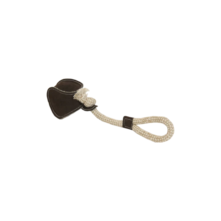 Он изготовлен из прочной хлопчатобумажной веревки, что позволяет играть с собакой, не опасаясь ее сломать.