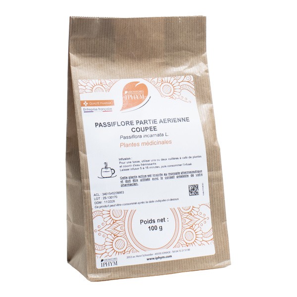 Этот пакетик срезанной пассифлоры был специально подготовлен лабораториями Iphym, чтобы вы могли приготовить настой, полезные свойства которого, как говорят, успокаивают тревогу и помогают вам спокойно выспаться.