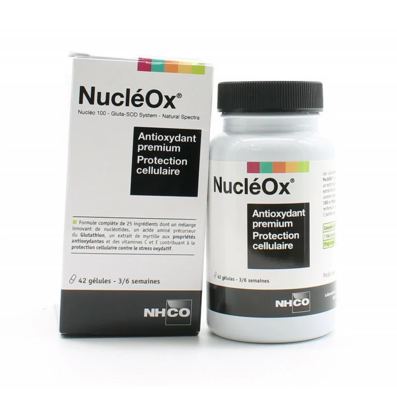 Описание: NHCO NucléOx сочетает в себе 25 ингредиентов, большинство из которых обладают мощными антиоксидантными свойствами: Nucléo 100 представляет собой особую смесь нуклеотидов. Они являются составляющими ДНК и участвуют в фундаментальных процессах в организме. Система Gluta-SOD содержит N-ацетил-L-цистеин, аминокислотный предшественник глутатиона и супероксиддисмутазы SOD, экстрагированный из дыни. Natural Spectra — это смесь экстрактов черники с антиоксидантными свойствами и запатентованного полифенокса, который содержит количество полифенолов, эквивалентное двум порциям фруктов. Комплекс AC3 обеспечивает витамин С, селен и витамин Е, которые помогают защитить клетки от окислительного стресса. Рекомендации по применению: Принимайте от 1 до 2 капсул в день во время еды. Состав: N-ацетил-цистеин, Spectra 22 (экстракт кожуры и семян винограда Vitis vinifera*, экстракт листьев зеленого чая Camellia sinensis, морковный сок, сок брокколи, сок листьев зеленой капусты, сок луковицы и чеснока, зародыши пшеницы, сок ростков спаржи). , томатный сок, черника, помело, папайя, ананас, клубника, яблоко, абрикос, вишня, апельсин, черная смородина, оливка и огурец), Nucléo 100 (динатриевые соли гуанозин-5′-монофосфата «GMP», инозин-5′- монофосфат «ИМФ» и уридин-5′-монофосфат «УМФ», цитидин-5′-монофосфат «ЦМП», аденозин-5′-монофосфат «АМФ»), экстракт кожицы винограда (Vitis vinifera), стандартизированный по ресвератролу, витамин С ( аскорбиновая кислота), экстракт лука (Allium cepa), титрованный по кверцетину, L-карнозин, экстракт брокколи (Brassica oleracea var italica), концентрат сока дыни, стандартизированный по СОД (супероксиддисмутаза), коэнзим Q10, экстракт корневища Curcuma longa, стандартизированный по куркуминоидам, натуральный витамин Е (сукцинат D-альфа-токофериловой кислоты), экстракт плодов черного перца (Piper nigrum), селенометионин, антислеживатель: растительный стеарат магния. Капсула: гидроксипропилметилцеллюлоза, краситель: медные комплексы хлорофиллинов. Меры предосторожности при применении. Как и любую пищевую добавку, NHCO NucléOx следует употреблять в рамках разнообразного и сбалансированного питания и здорового образа жизни. Не принимайте NHCO NucléOx, если у вас аллергия на какой-либо из его компонентов. Компоненты Не превышайте рекомендуемую дозу. Не оставляйте NHCO NucléOx в местах, доступных для маленьких детей.