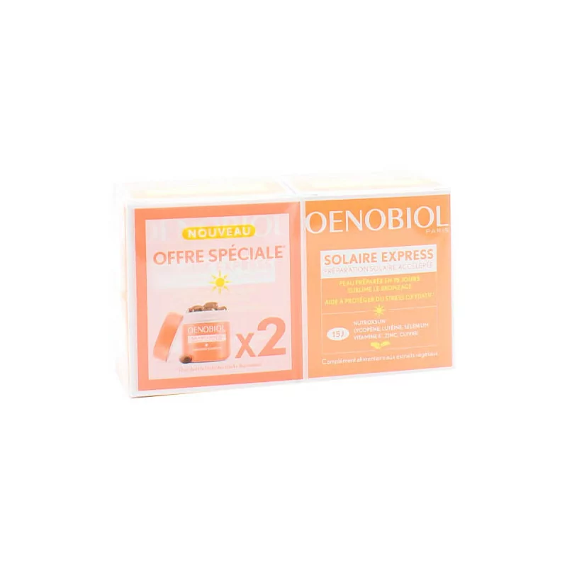 ОписаниеХотите быстро подготовить кожу к солнцу? Oenobiol Solaire Express подготовит вашу кожу к солнцу за 15 дней. Инновационный бренд в области солнечных пищевых добавок Oenobiol предлагает комплекс растительных экстрактов, которые усиливают и усиливают загар. Oenobiol Solaire Express оказывает три действия: — Подготавливает кожу к солнцу.