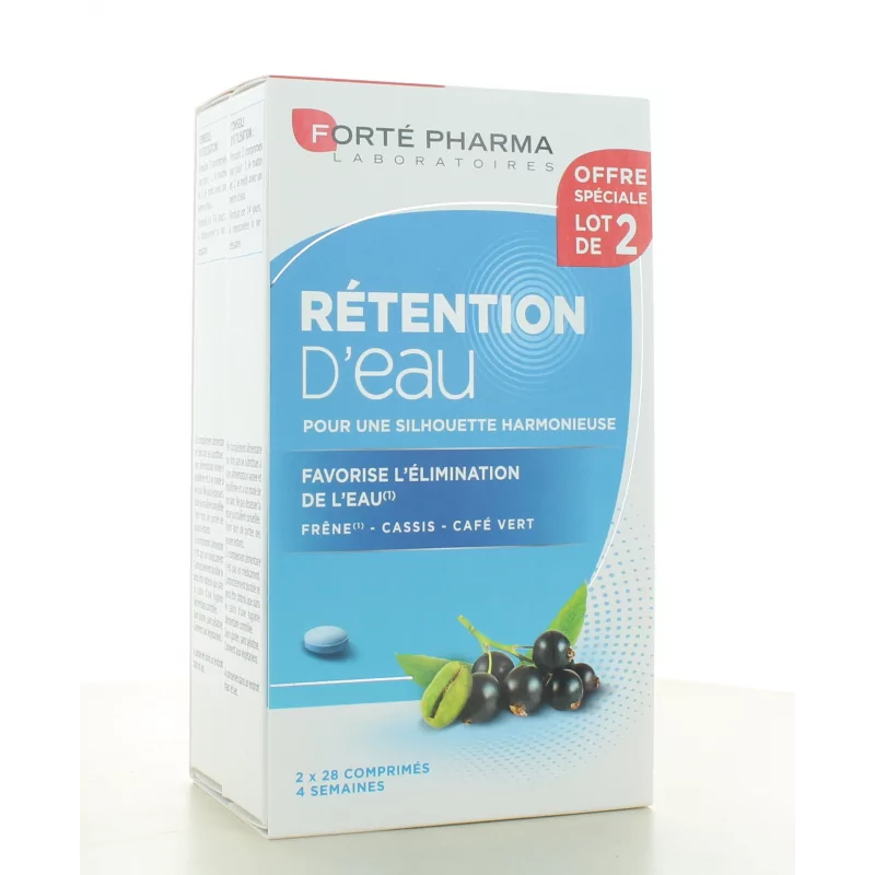Описание: Удержание воды Forté Pharma – это пищевая добавка, предназначенная для женщин в возрасте от 45 лет и старше, чье тело меняется. Эта уникальная пищевая добавка помогает ограничить задержку воды, способствуя выведению ее почками благодаря своим активным ингредиентам: зеленому кофе и золе. Retention d’Eau Forté Pharma также содержит марганец, селен и витамин B12, которые защищают клетки от окислительного стресса, а витамин B6 помогает регулировать гормональную активность. Способ применения: Обычная дозировка Forté Pharma Water Retention составляет 2 таблетки в день (утром и в полдень), запивая стаканом воды. В идеале курс лечения длится 1 месяц и при необходимости может быть продлен. СоставКомпонентыКоличество (на 2 таблетки)NRV*Тиамин (витамин B1)1,1 мг100%Рибофлавин (витамин B12)0,70мг50%Витамин B61,4 мг100%Марганец1,2 мг60%Селен27,5 мкг50% *Рекомендуемая пищевая ценность Инструкции по мерам предосторожности Forté Pharma Удержание воды является пищевой добавкой. Оно не может заменить здоровое и разнообразное питание. Forté Pharma Water Retention предназначен для взрослых. Никогда не оставляйте эту пищевую добавку в доступном для детей месте.