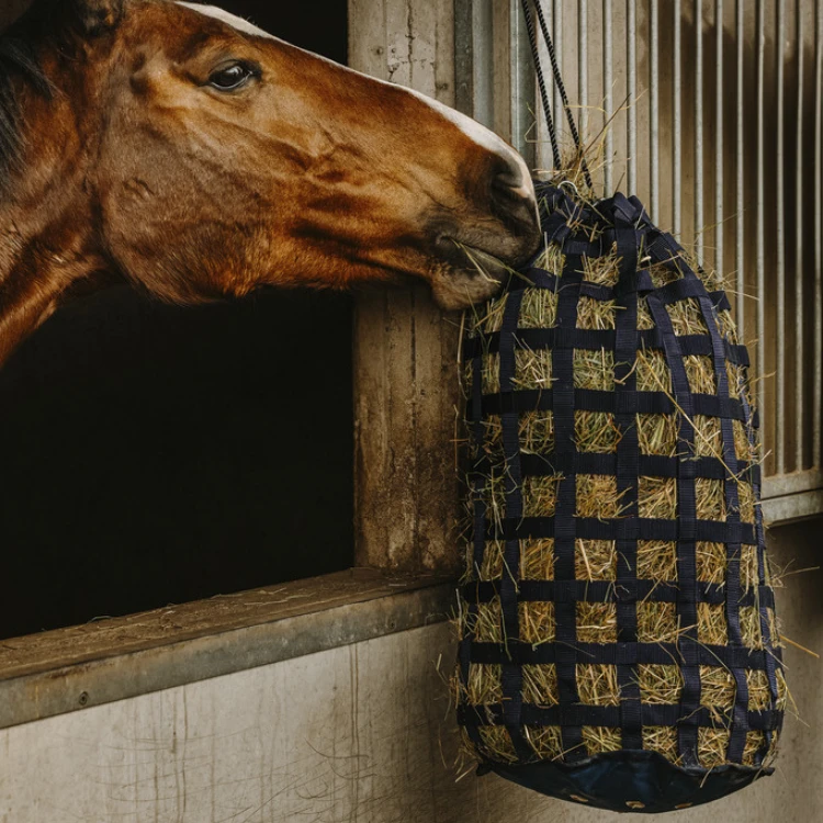 Этот мешок для сена сочетает в себе эффективность и устойчивость для оптимального управления питанием лошадей.