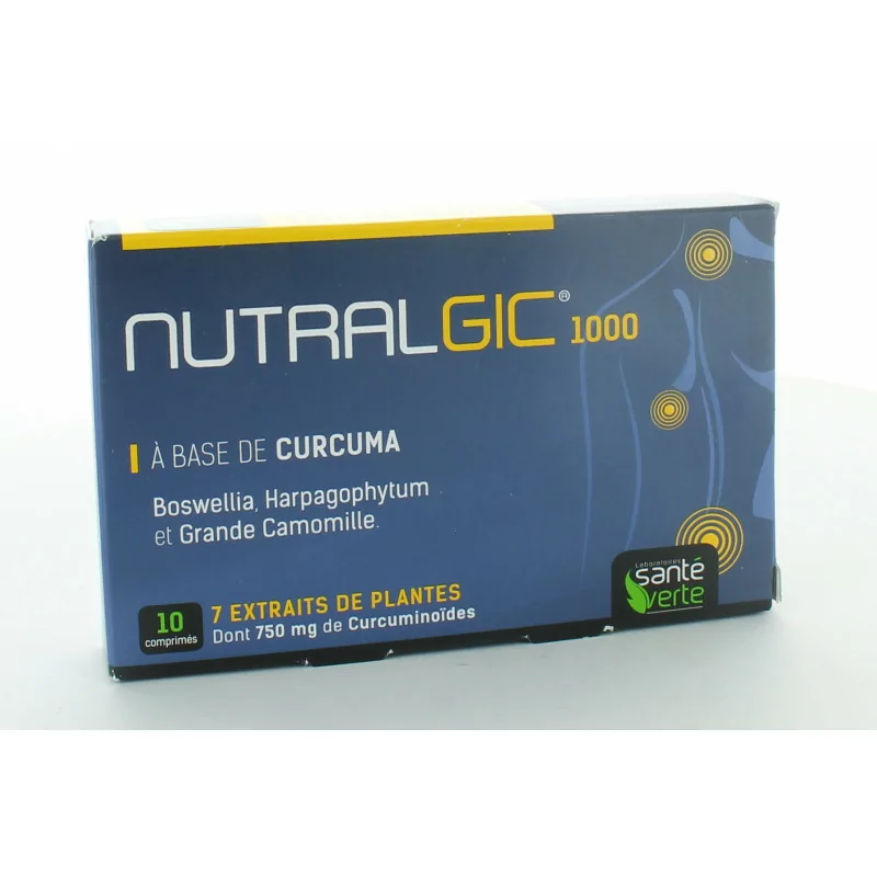 Nutralgic 1000 Santé Verte, содержащий 7 растительных экстрактов, включая куркуму, гарпагофитум и белую иву, помогает поддерживать хорошее здоровье суставов.