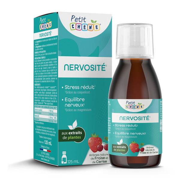 Сироп Petit Chêne от нервозности* — это пищевая добавка с сахарами, изготовленная из растений, витамина B6 и магния.