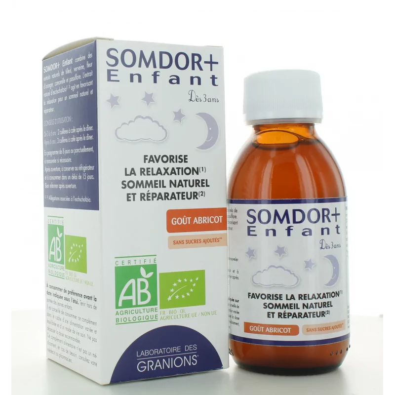 ОписаниеSomdor + Child — это пищевая добавка, разработанная Laboratoire des Granions для расслабления и сна у детей в возрасте от 3 лет и старше. Эта органическая пищевая добавка позволяет детям до подросткового возраста восстанавливать спокойный сон ночь за ночью. Приятный абрикосовый вкус делает его особенно популярным продуктом и облегчает его ежедневное использование. Рекомендации по применениюОт 3 до 6 лет: 2 чайные ложки после ужина. От 6 лет: 3 чайные ложки после ужина. Используйте Somdor+ Child время от времени или в виде 8-дневного курса с возможностью продления при необходимости. Состав*КоличествоЛиповый цвет255 мгВербена150 мгРомашка150 мгЭшшольция150 мгПассифлора75 мгАпельсиновая вода300 мгСироп агавы3,75 гДругие компоненты: натуральные ароматизаторы, лимонная кислота, аскорбиновая кислота, ксантановая камедь, натуральный ароматизатор розмарина *От использования Organic Farming RecautionsSomdor + Child — пищевая добавка. Поэтому крайне важно употреблять его в рамках здорового образа жизни и разнообразной и сбалансированной диеты. Употреблять Сомдор + Чайлд желательно до окончания срока, указанного на упаковке. Никогда не превышайте максимальную рекомендуемую дозу. Сомдор + Чайлд не является лекарством. Если проблемы сохраняются или ухудшаются, немедленно обратитесь за медицинской помощью. Всегда храните бутылку в недоступном для детей месте.