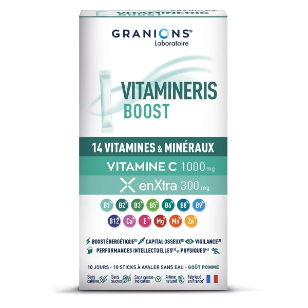 Для стимуляции основных функций организма и быстрого восстановления энергии компания Laboratoire des Granions разработала Vitamineris Boost — концентрат из 10 витаминов, 4 минералов и растительного экстракта.