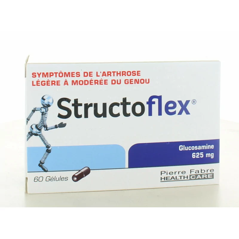 Показания: Структофлекс — препарат, используемый для облегчения симптомов, связанных с остеоартритом коленного сустава легкой и средней степени тяжести. Это лекарство содержит глюкозамин, который относится к группе нестероидных противовоспалительных и противоревматических средств. Способ и способ применения Структофлекс следует принимать внутрь. Проглотите капсулы, запивая большим стаканом воды или другой жидкости. Принимают ли капсулы во время еды или нет, значения не имеет. ДозировкаОбычная доза Структофлекса составляет 2 капсулы в день. Всегда тщательно соблюдайте дозировку, указанную врачом. Меры предосторожности при использовании Никогда не используйте Structoflex в следующих случаях: — У вас аллергия на глюкозамин или один из других компонентов препарата. — У вас аллергия на моллюсков, поскольку из них извлекается глюкозамин. Все противопоказания, связанные со Structoflex, вы найдете в брошюре или обратившись за советом к своему врачу или фармацевту. Как и любое лекарство, Структофлекс может вызывать ряд побочных эффектов. Список этих эффектов вы найдете в брошюре. Будьте особенно осторожны, если вам приходится комбинировать Structoflex с варфарином (антикоагулянтом) или тетрациклином (антибиотиком). Во всех случаях важно сообщать своему врачу или фармацевту о любом текущем или недавнем приеме другого лекарства. Если вы беременны или кормите грудью, предпочтительно не использовать это лекарство, поскольку клинических данных в настоящее время не существует. Состав: Активное вещество (на одну капсулу)Глюкозамин: 625 мгВ форме глюкозамина гидрохлорида: 750 мгВспомогательные вещества: магния стеаратКомпоненты оболочки капсулы: желатин, железа оксид красный (Е172), титана диоксид (Е171), железа оксид черный (Е172). Дополнительная информацияЕсли симптомы сохраняются или ухудшаются, обратитесь к врачу. Обязательно храните Structoflex в недоступном для маленьких детей месте. Чтобы получить всю информацию о Структофлексе, рекомендуем ознакомиться с инструкцией или обратиться за советом к врачу или фармацевту.