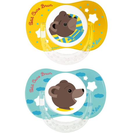 Пустышки Luc & Léa оснащены анатомической (обратимой) силиконовой соской, которая адаптируется к небу, учитывая развитие ротовой полости ребенка, и изогнутым воротником Comfort+, ограничивающим контакт слюны с контурами рта.