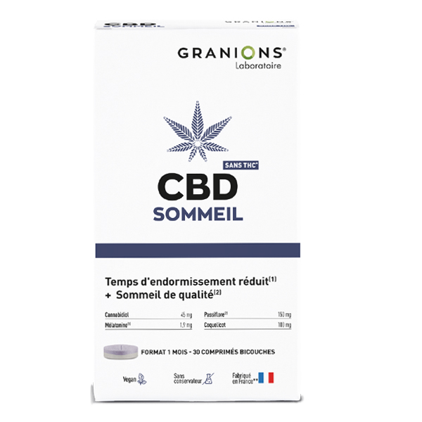 Компания Laboratoires des Granions, фармацевтическая лаборатория, специализирующаяся на натуральном здоровье с 1948 года, разработала Granions CBD Sleep — пищевую добавку, произведенную во Франции с использованием технологии двухслойных таблеток. В её состав входят изолят КБД, мелатонин и успокаивающие растения, которые помогут вам вновь обрести удовольствие от сна.