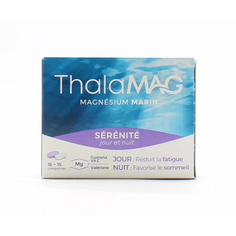 Описание Thalamag Marine Magnesium Serenity — это пищевая добавка на основе морского магния, витамина С и экстракта гуараны. Помогает снизить усталость в течение дня и улучшить сон вечером благодаря экстракту валерианы. Способ применения: принимать по 1 таблетке в день утром и 1 вечером вечером, запивая стаканом воды. Состав: Ежедневные таблетки: оксид магния, наполнители: микрокристаллическая целлюлоза, фосфаты кальция; Экстракт семян гуараны (Paullinia cupana), Аскорбиновая кислота (Витамин С), Антислеживатели: фосфаты кальция, Поливинилпирролидон, Магниевые соли жирных кислот, Диоксид кремния [нано]; Покрывающие вещества: гидроксипропилметилцеллюлоза, микрокристаллическая целлюлоза, глицерин, жирные кислоты; Цвет: концентрат сафлора. Ночные таблетки: оксид магния, наполнители: микрокристаллическая целлюлоза, фосфаты кальция; Экстракт корня валерианы (Valeriana officinalis), Покрывающие вещества: гидроксипропилметилцеллюлоза, микрокристаллическая целлюлоза, глицерин, жирные кислоты; Антислеживатели: Магниевые соли жирных кислот, Диоксид кремния [нано]; Краситель: концентрат спирулины. Меры предосторожности при применении. Как и любую пищевую добавку, Thalamag Marine Magnesium Sérénité следует употреблять в рамках разнообразной и сбалансированной диеты и здорового образа жизни. Не принимайте Thalamag Marine Magnesium Sérénité, если у вас аллергия на один из ее компонентов. Не превышайте рекомендуемую дозу. Не оставляйте Thalamag Marine Magnesium Serenity в местах, доступных для маленьких детей.