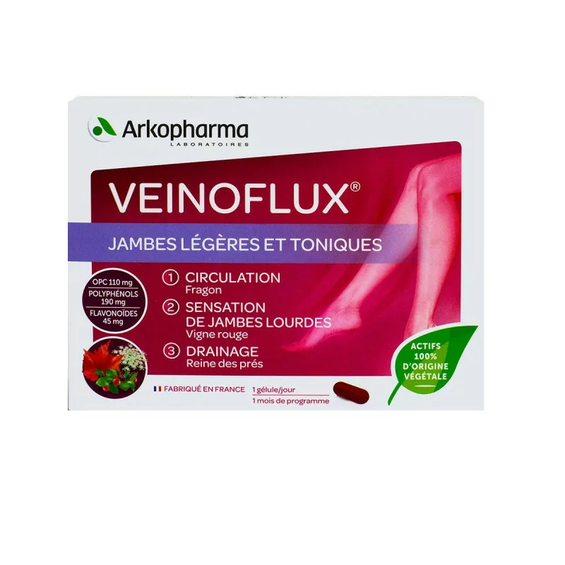 ОписаниеСочетая растения и витамины, Veinoflux Light Legs Arkopharma представляет собой пищевую добавку, предназначенную для лечения тяжелых ног. Ее различные активные ингредиенты играют роль сохранения целостности системы кровообращения для бодрых и здоровых ног. Veinoflux Light Legs Arkopharma показана в некоторых случаях. от: Тяжелые ноги Ощущение тяжести, сильная усталость Длительное стояние Сильный жар Способ применения: 1 капсула в день, желательно утром перед завтраком, запивая большим стаканом воды.